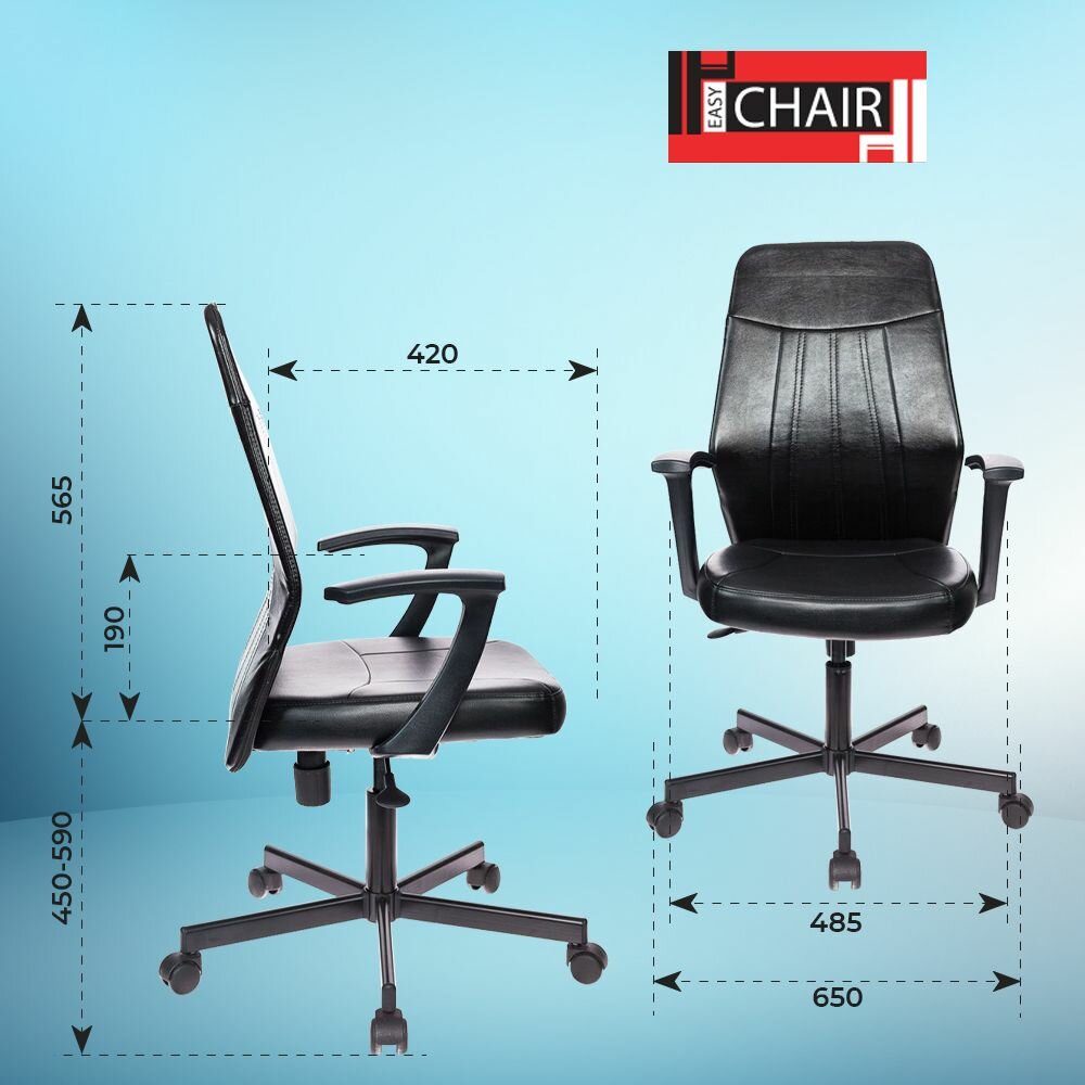 Кресло компьютерное Easy Chair 224, офисный стул на колесиках, искусственная кожа, черный информация: