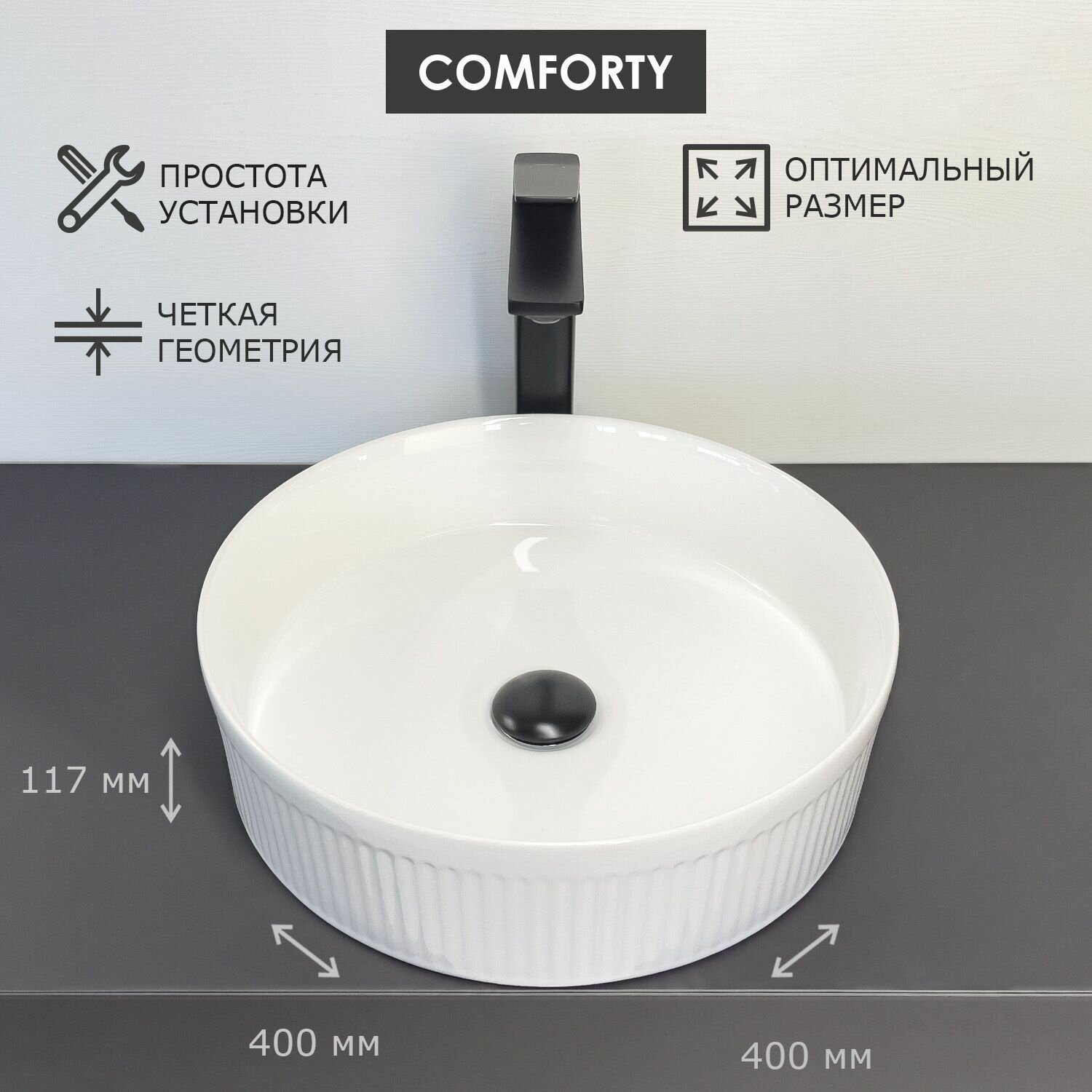 Накладная круглая рифленая раковина 40см Comforty CF178760D для ванной для установки на столешницу информация: