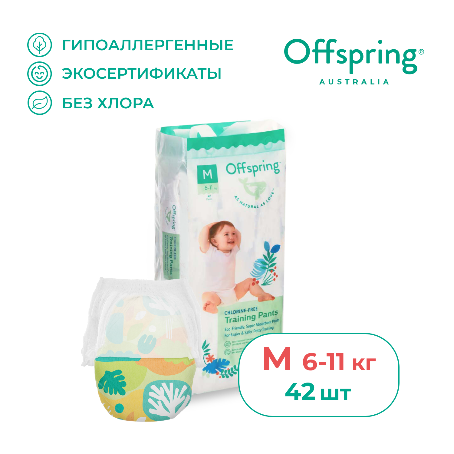 Offspring трусики-подгузники, M 6-11 кг. 42 шт. расцветка Авокадо 1 795 ₽