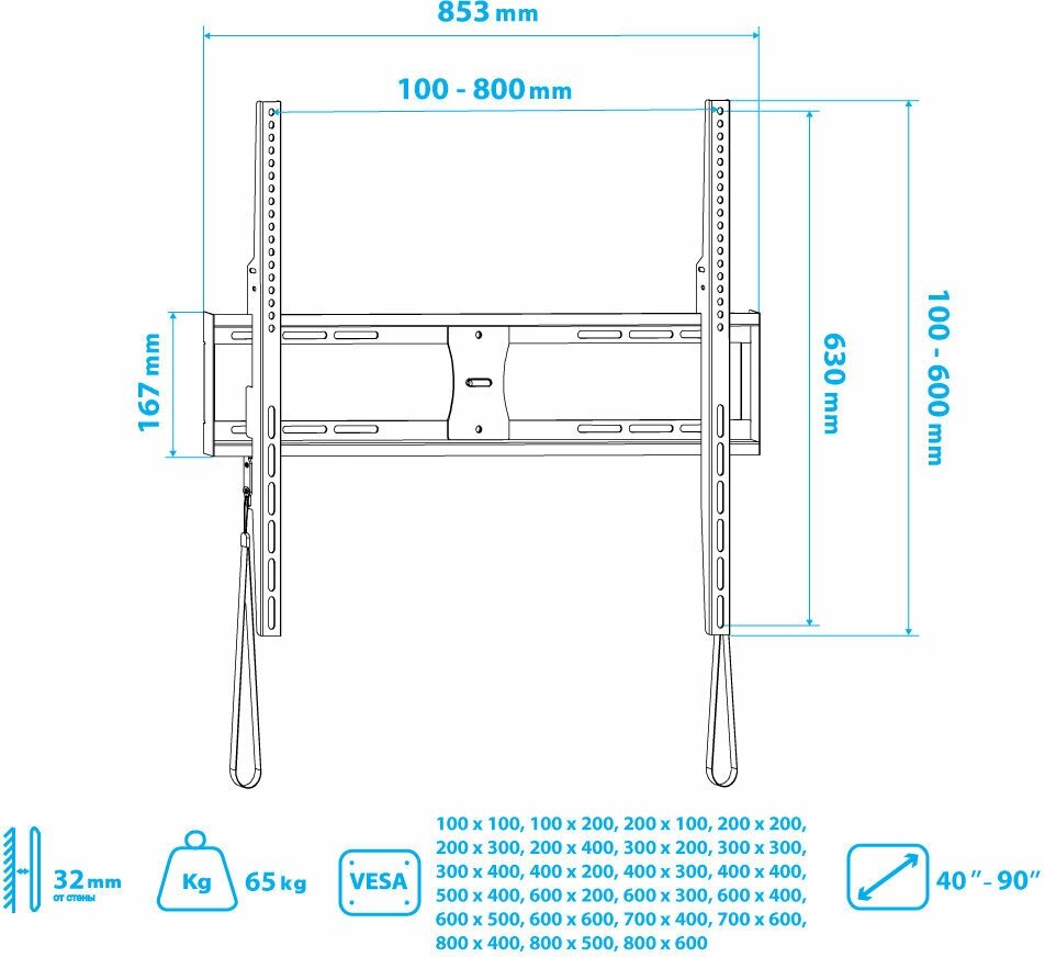 Кронштейн для телевизора настенный VLK TRENTO-41 / до 90 дюймов / до 65 кг / vesa 800x600 / фиксированное крепление для тв без регулировок / держатель для телевизора