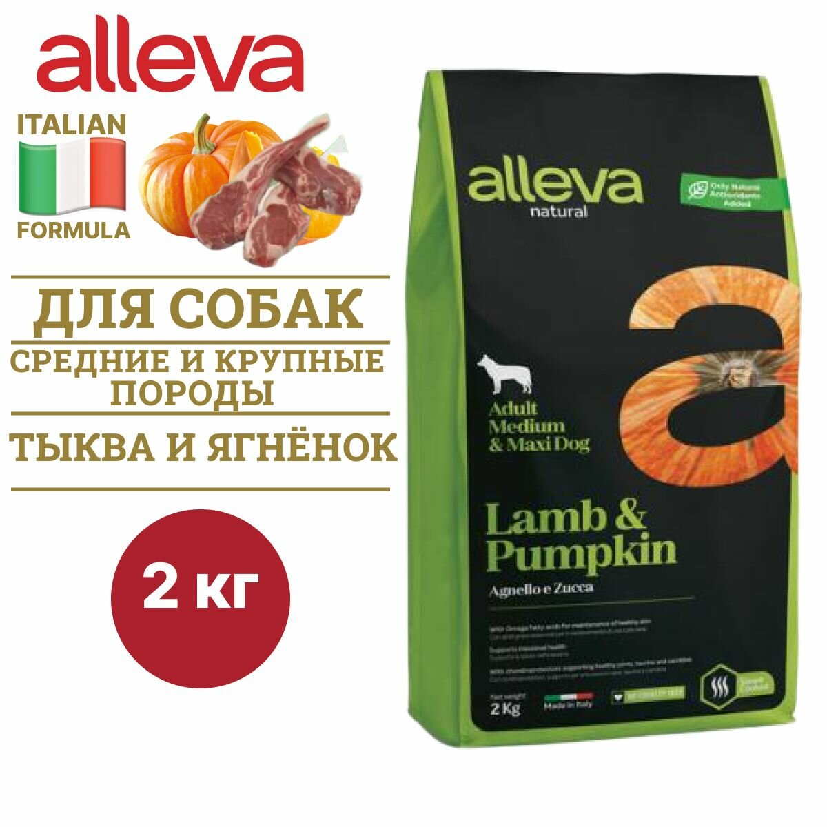 Корм сухой для собак средних и крупных пород Alleva Natural с ягненком и тыквой, 2 кг информация: