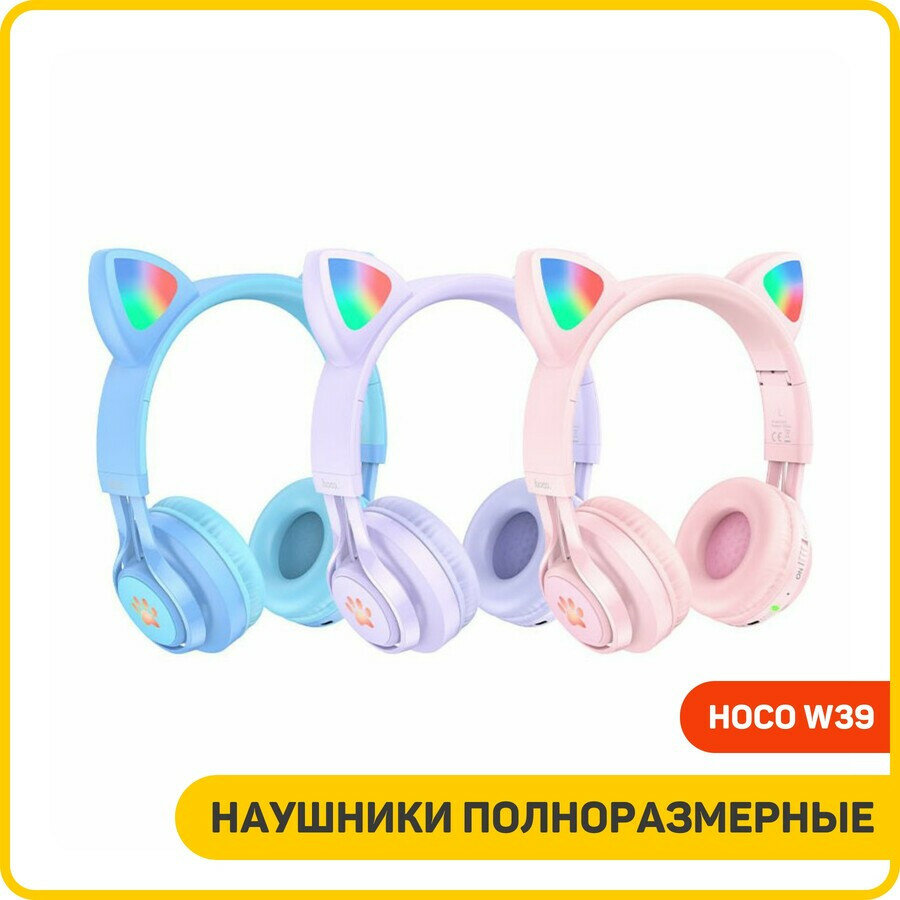 Наушники полноразмерные беспроводные Hoco W39 Cat Ear (Bluetooth) фиолетовый