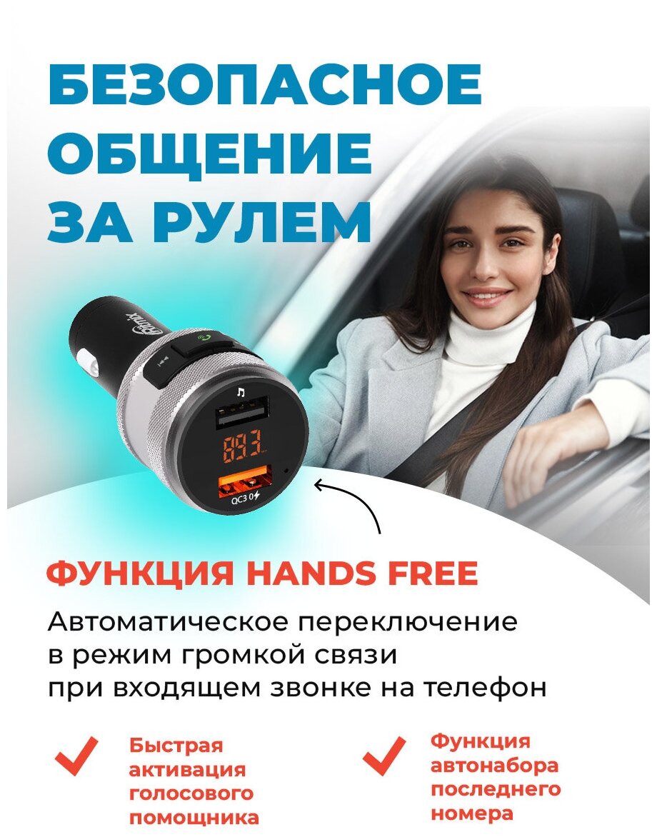 Орбита / TS-CAF120 FM-трансмиттер с bluetooth/микрофоном/ для автомобиля/ зарядник QC 3.0 для авто в прикуриватель