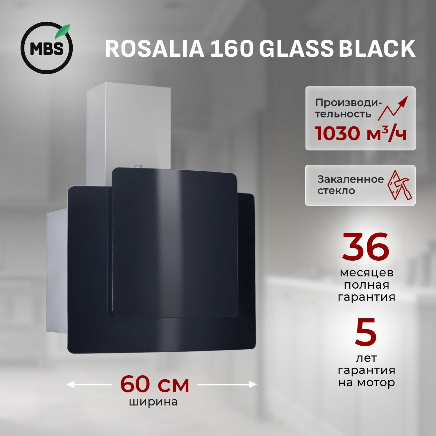 Кухонная вытяжка MBS ROSALIA 160 GLASS BLACK/60 см/производительность 1030м3/ч, низкий уровень шума. информация: