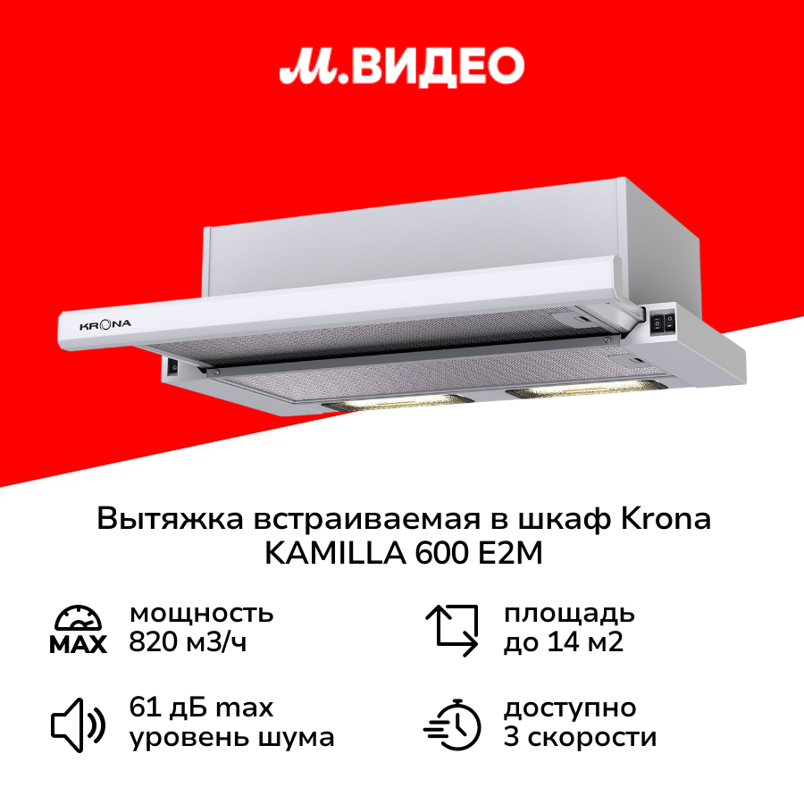 Вытяжка встраиваемая в шкаф Krona KAMILLA 600 E2M White информация: