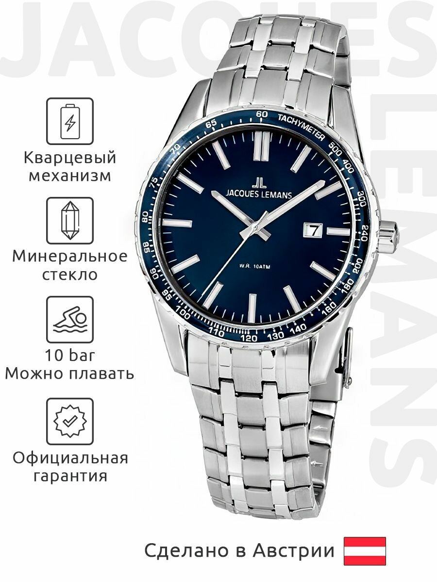 Наручные часы Jacques Lemans 1-2022i, мужские кварцевые с датой информация: