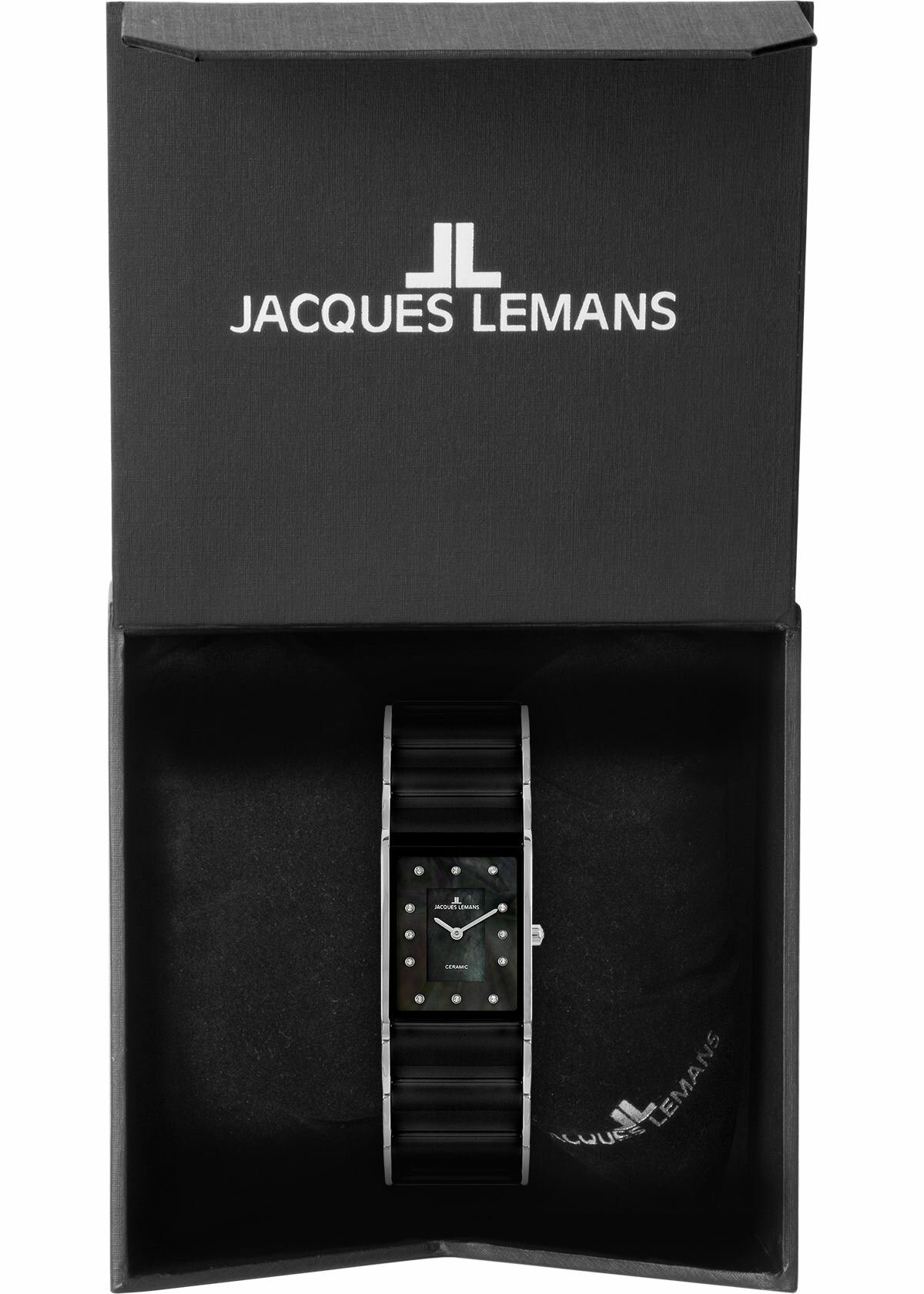 Отзывы на Наручные часы Jacques Lemans 1-1940F, женские прямоугольные кварцевые керамические часы Жак Леман с кристаллами Swarovski на комбинированном браслете (сталь и керамика)