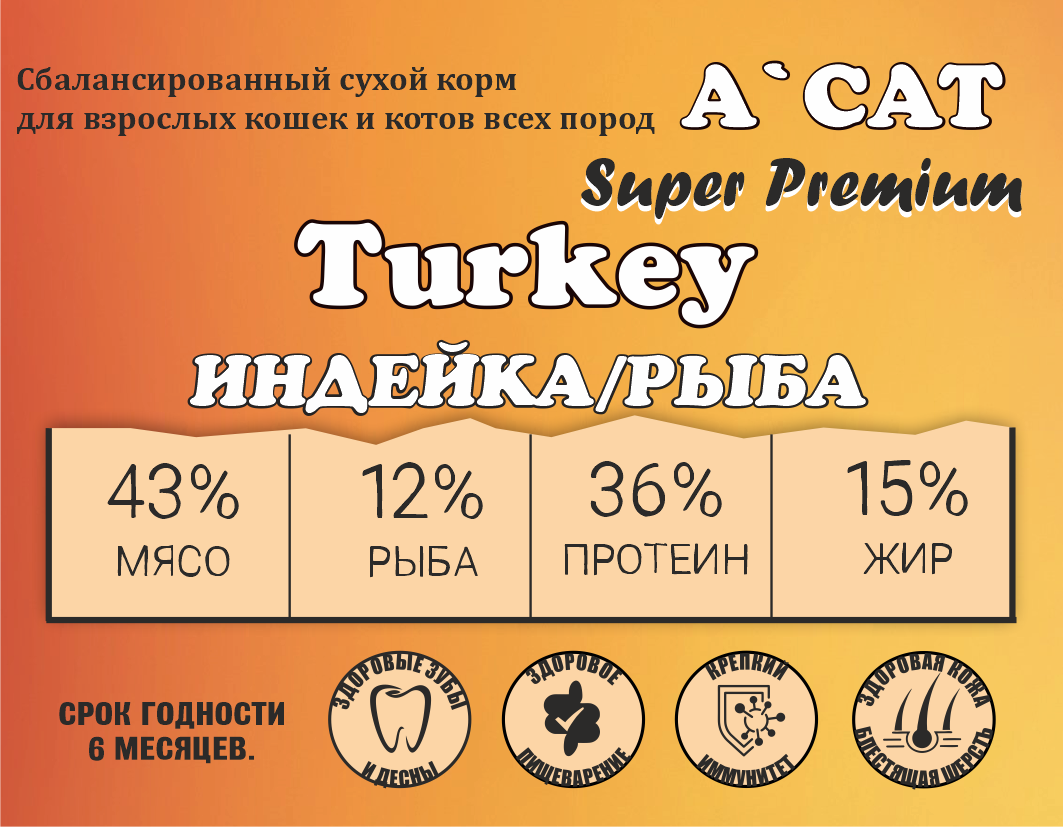 Сухой корм Acari Ciar для кошек A'Cat Turkey 1,5 кг Индейка 1 245 ₽