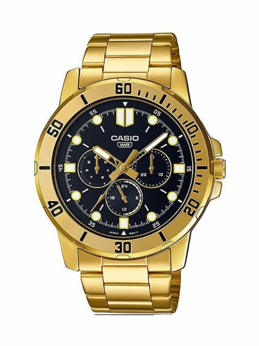 Отзывы на MTP-VD300G-1E Casio наручные часы кварцевые WR30 (3 атм) мужские золотой отображение числа, отображение дня недели подсветка стрелок минеральное стекло