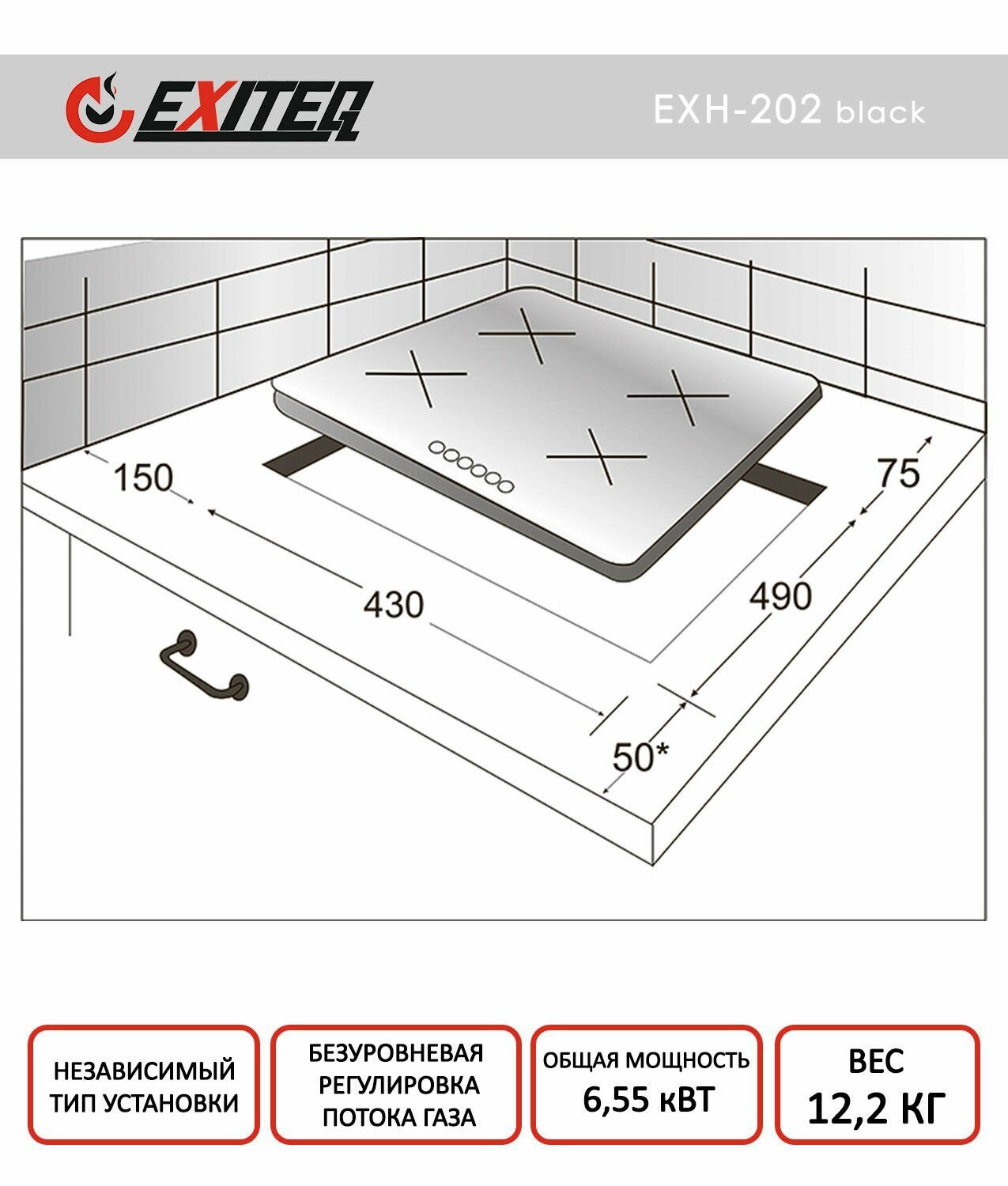 Встраиваемая газовая панель EXITEQ EXH-202