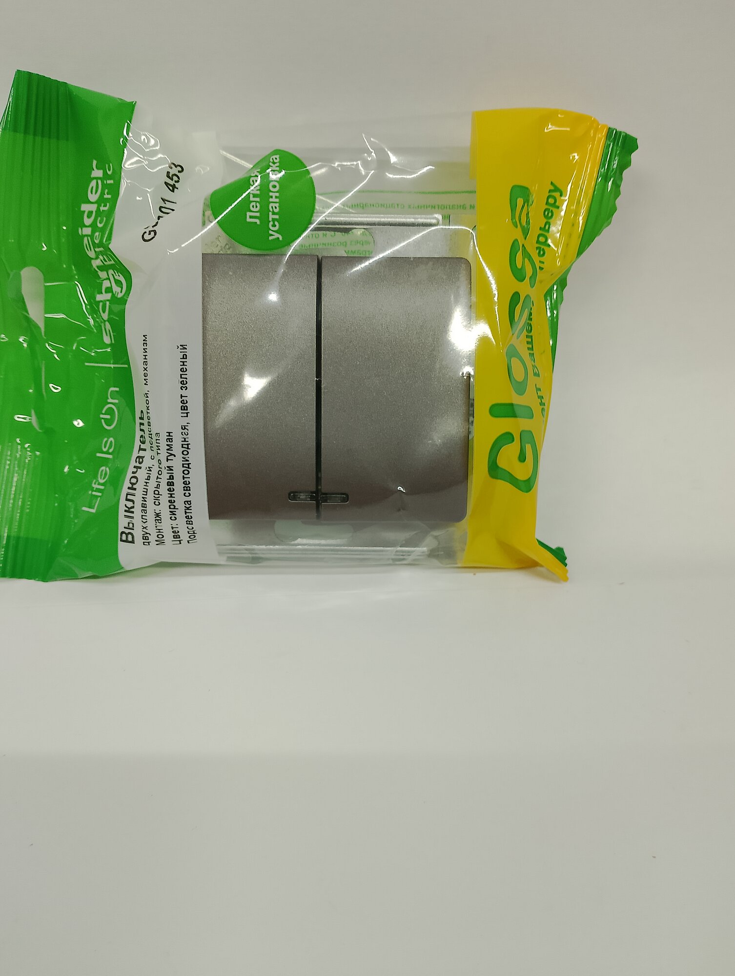 Отзывы на GLOSSA 2-клавишный выключатель с подсветкой,сх.5а,10AX, механизм,сиреневый туман