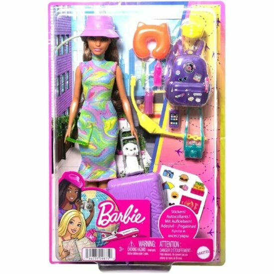 Кукла Barbie HKB05 с аксессуарами для путешествий и питомцем Барби Mattel информация: