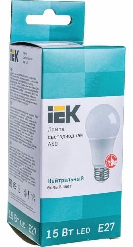 Лампа светодиодная IEK ECO 4000K, E27, A60, 15 Вт, 4000 К