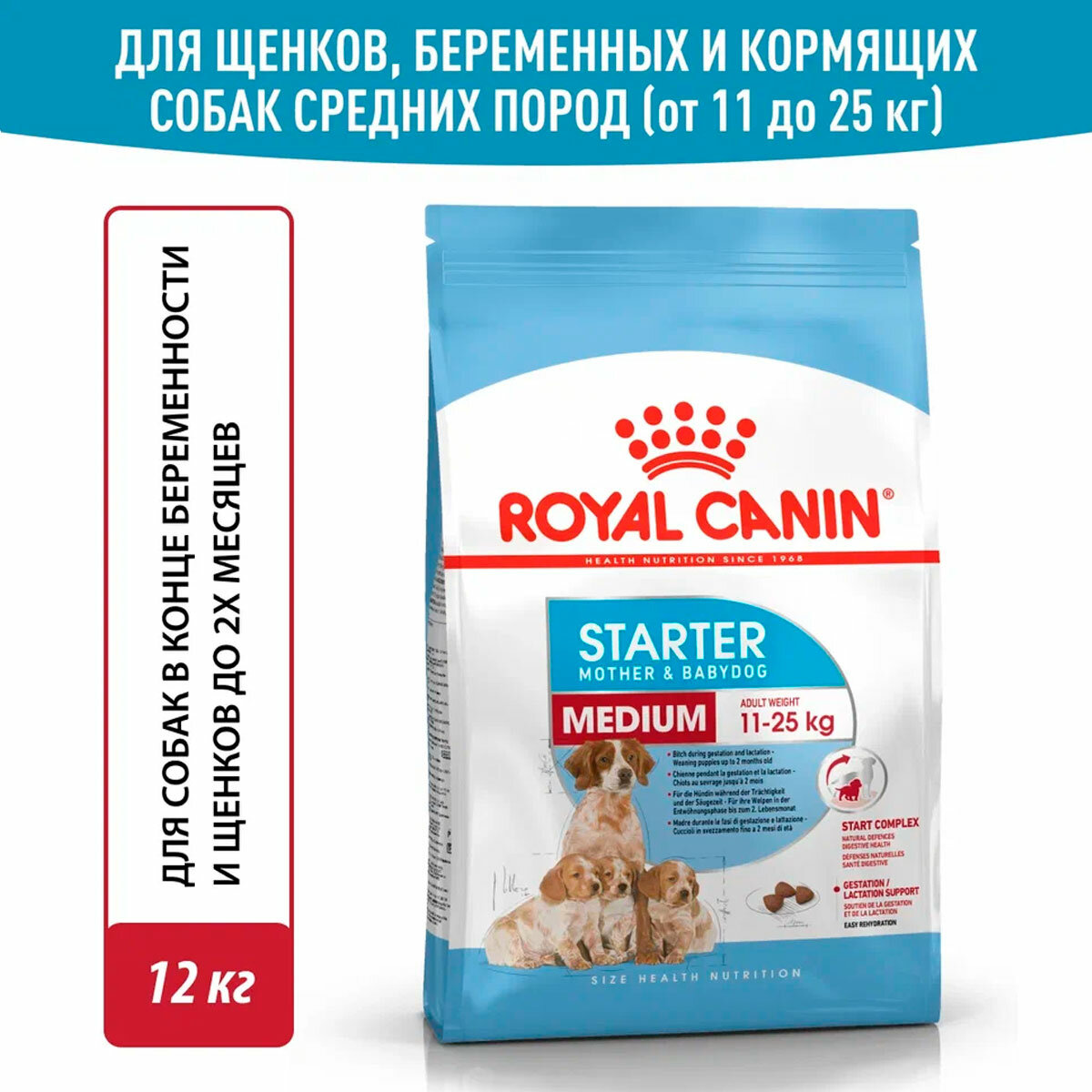 ROYAL CANIN MEDIUM STARTER 12 кг сухой корм для средних пород щенков до 2-х месяцев, беременных и кормящих сук 1 шт