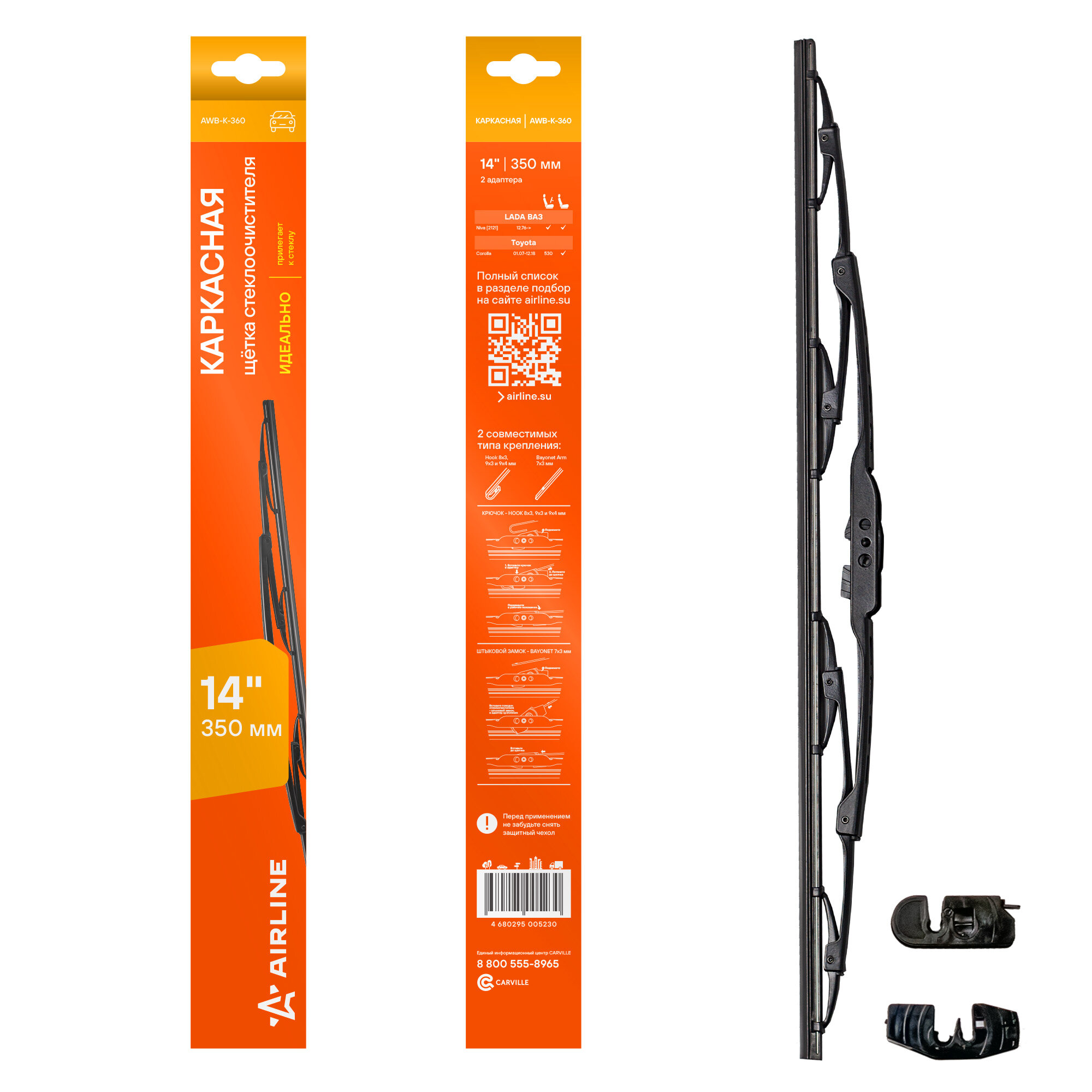 Щетка стеклоочистителя 350 мм (14") каркасная, 2 адаптера AWB-K-360 AIRLINE информация: