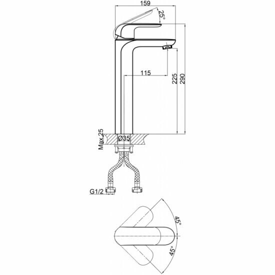 | Комплектация | смеситель - 1 шт., гибкая подводка - 2 шт., крепежная гайка - 1 шт., паспорт изделия - 1 шт., брендовая сумка - 1 шт. |
