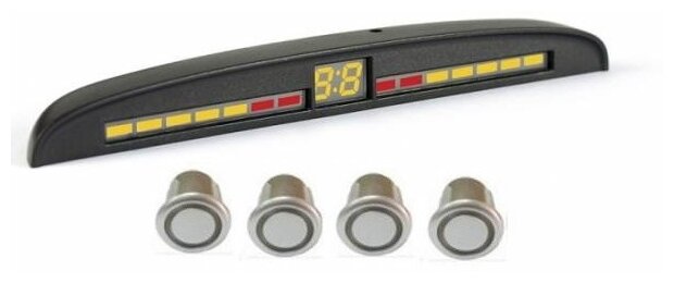 Парковочный радар, 4 врезных черных датчика с разъемом, индикатор 34 34-4-A-BLACK