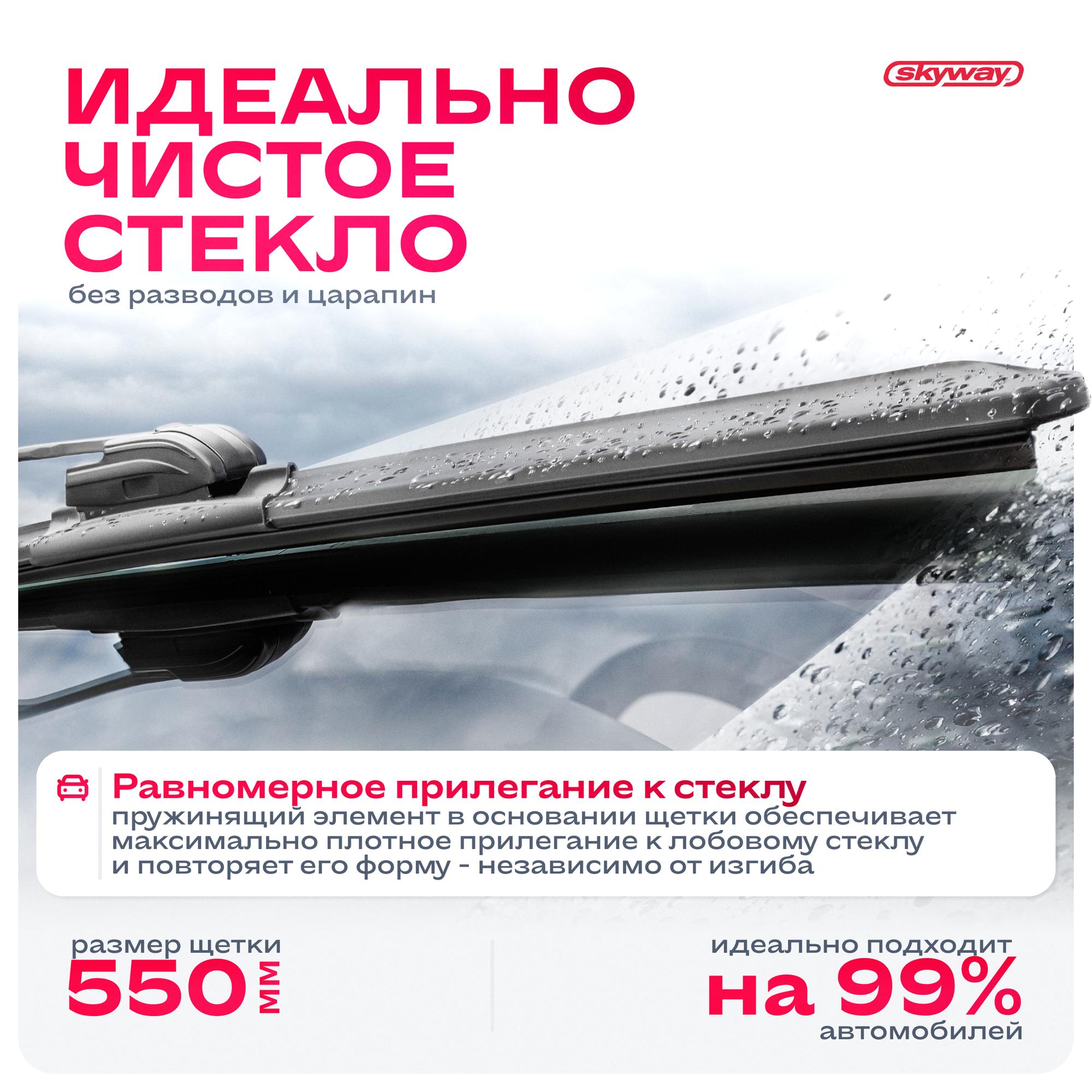 Щетка Стеклоочистителя Бескаркасная Skyway Стандарт 22"/550 Мм 9 Адаптеров Skyway арт. S02701066