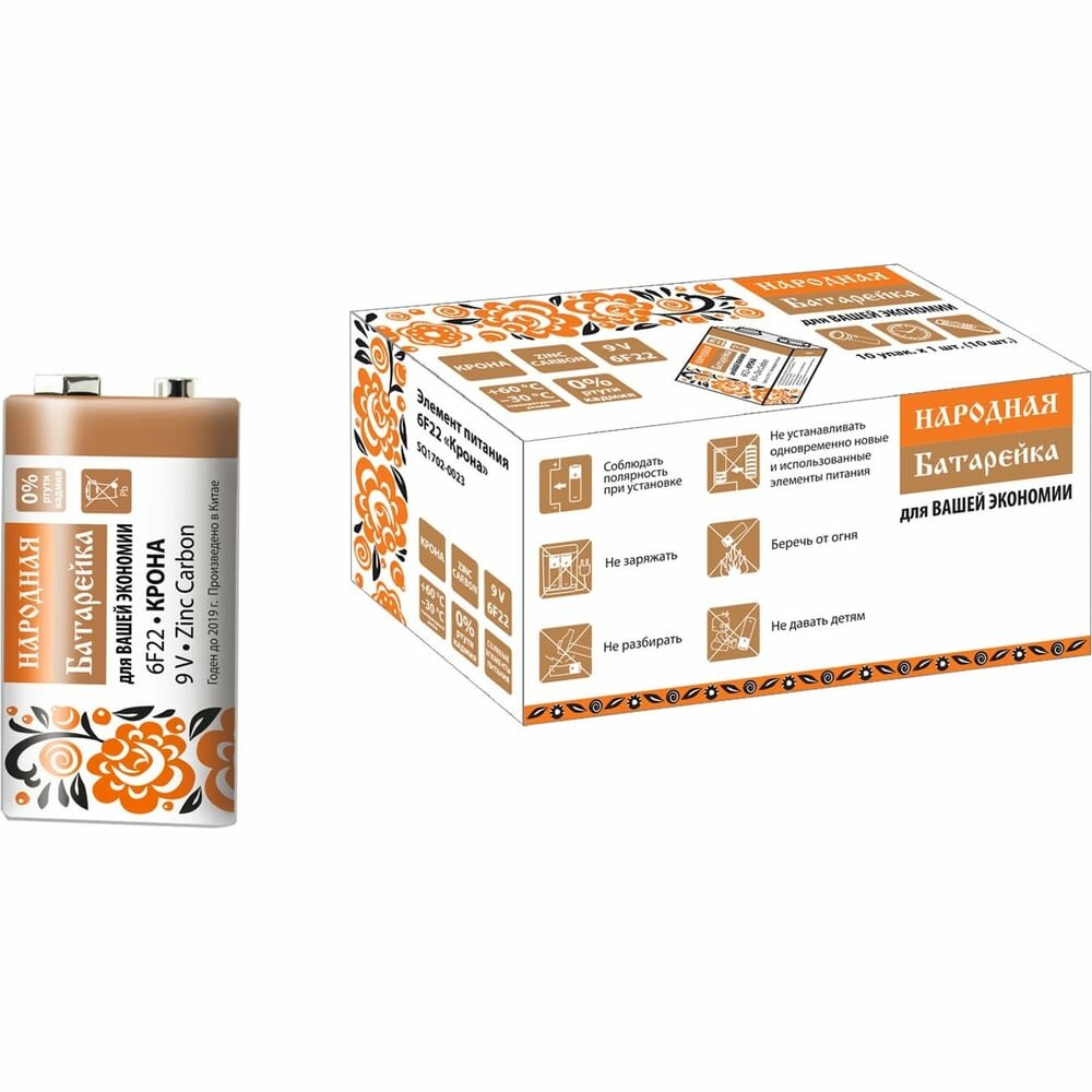 Отзывы на TDM Элемент питания 6F22 Крона Zinc Carbon 9V SH-1 Народный SQ1702-0023