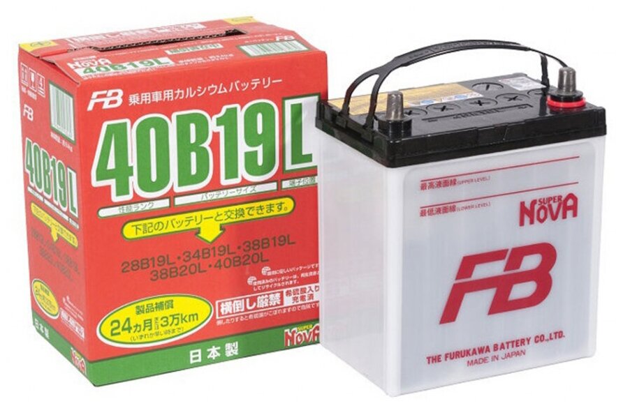 Аккумулятор автомобильный Furukawa Battery Super Nova 40B19L 6СТ-38 обр. 189x129x225