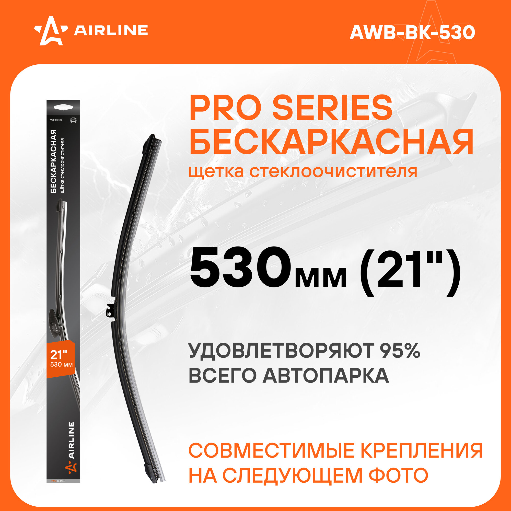 Отзывы на Щетка стеклоочистителя бескаркасная PRO 530мм (21") 10 адаптеров AWB-BK-530 AIRLINE