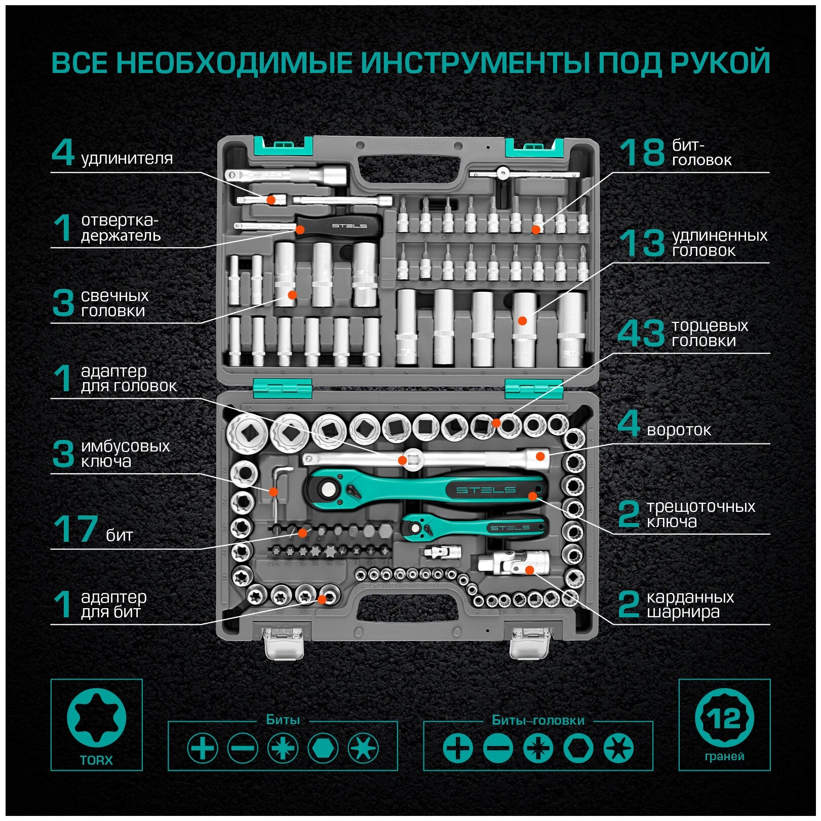 Набор инструментов STELS EQUIPMENT STELS 14122, 109 предметов, 12 гранные головки