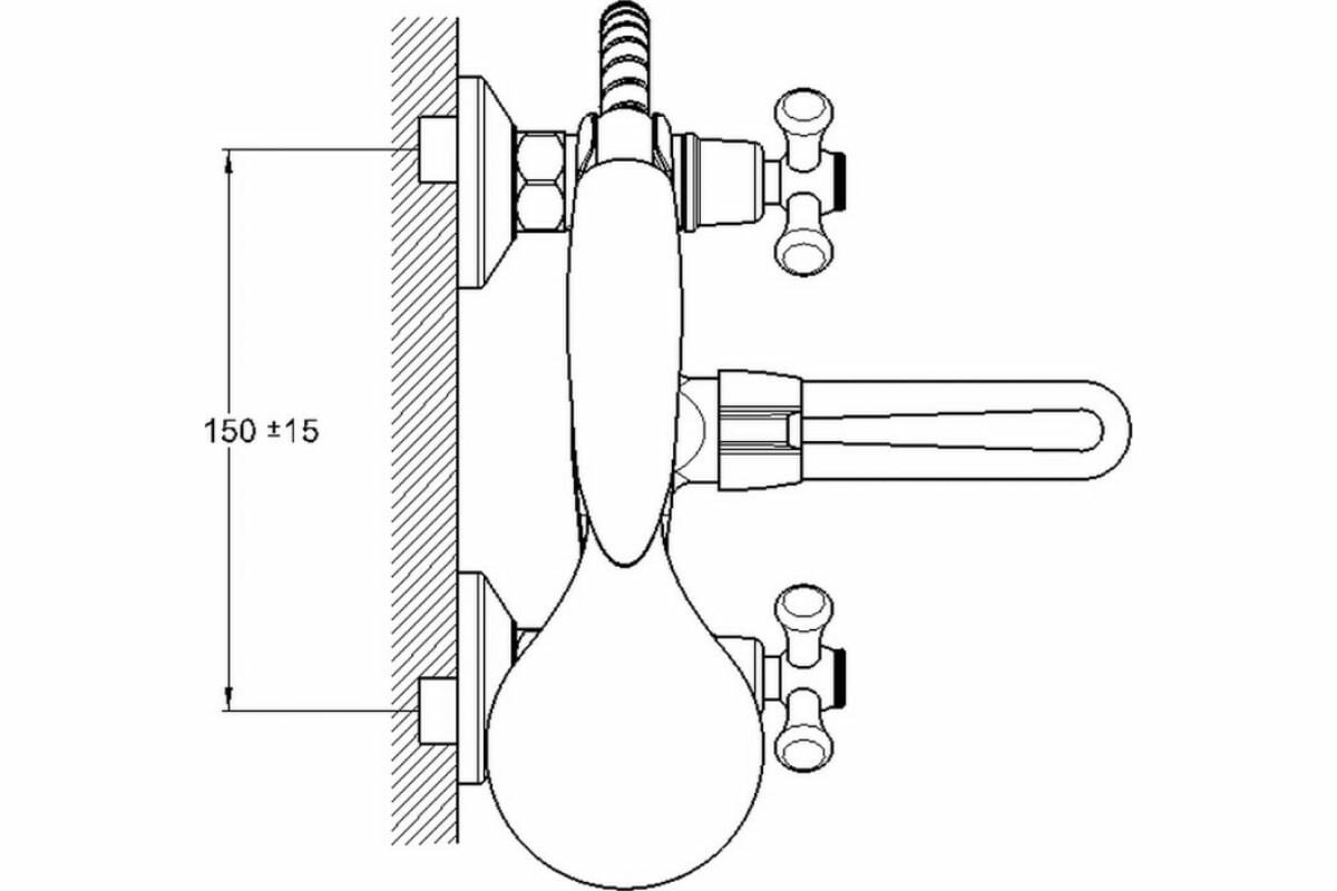 Смеситель на раковину настенный Эверест B46-350 с круглым поворотным изливом, кран-буксы 1/2", хром