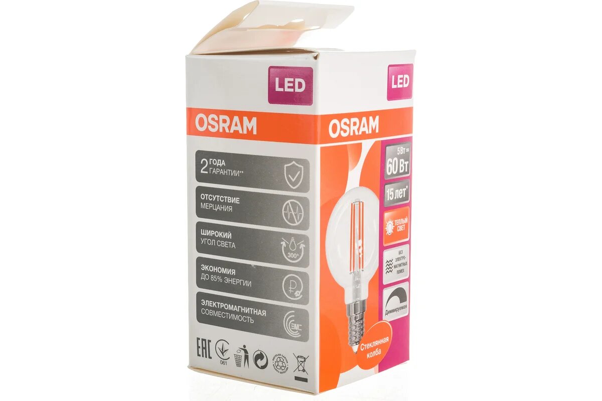 LED DIM 5WТЕПЛ230V FIL E14 ШАР - OSRAM