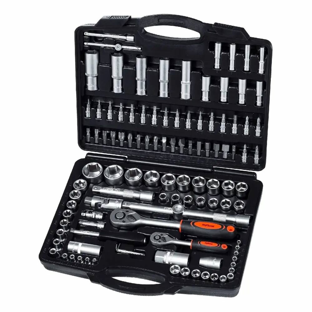 | Дополнительная информация | • привод 1/2", трещотка 1/2" 45 зубцов, удлинитель 1/2", 125мм, 250 мм, адаптер для воротка 1/2" - 3/8", привод 1/4", карданный шарнир 1/2", держатель бит 1/2" - 5/16", трещотка 1/4" 45 зубцов; удлинитель 50 мм, 100 мм, отверточная рукоятка 1/4" 150 мм, вороток т-образный 1/4" 115 мм, карданный шарнир 1/4", адаптер-переходник для бит 1/4"hex-1/4"sq |