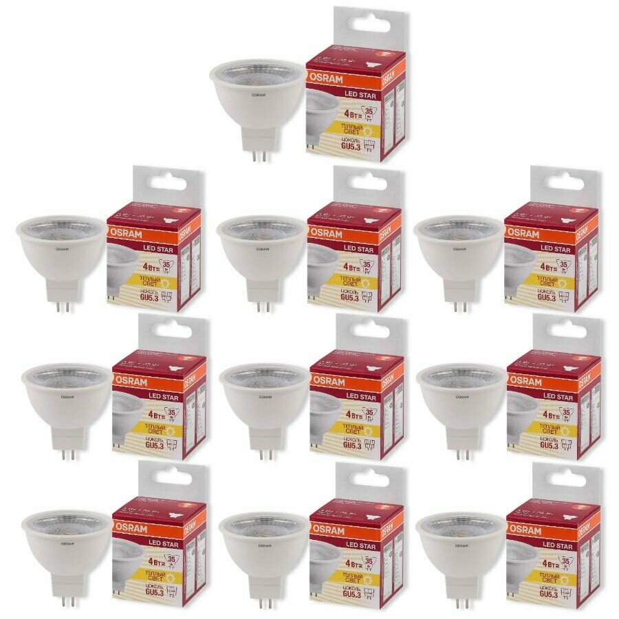 10 цен на Лампа Osram LED Star MR16 300лм, 4Вт, 3000К, теплый белый свет, Софит, GU5.3, светодиодная, 10 шт