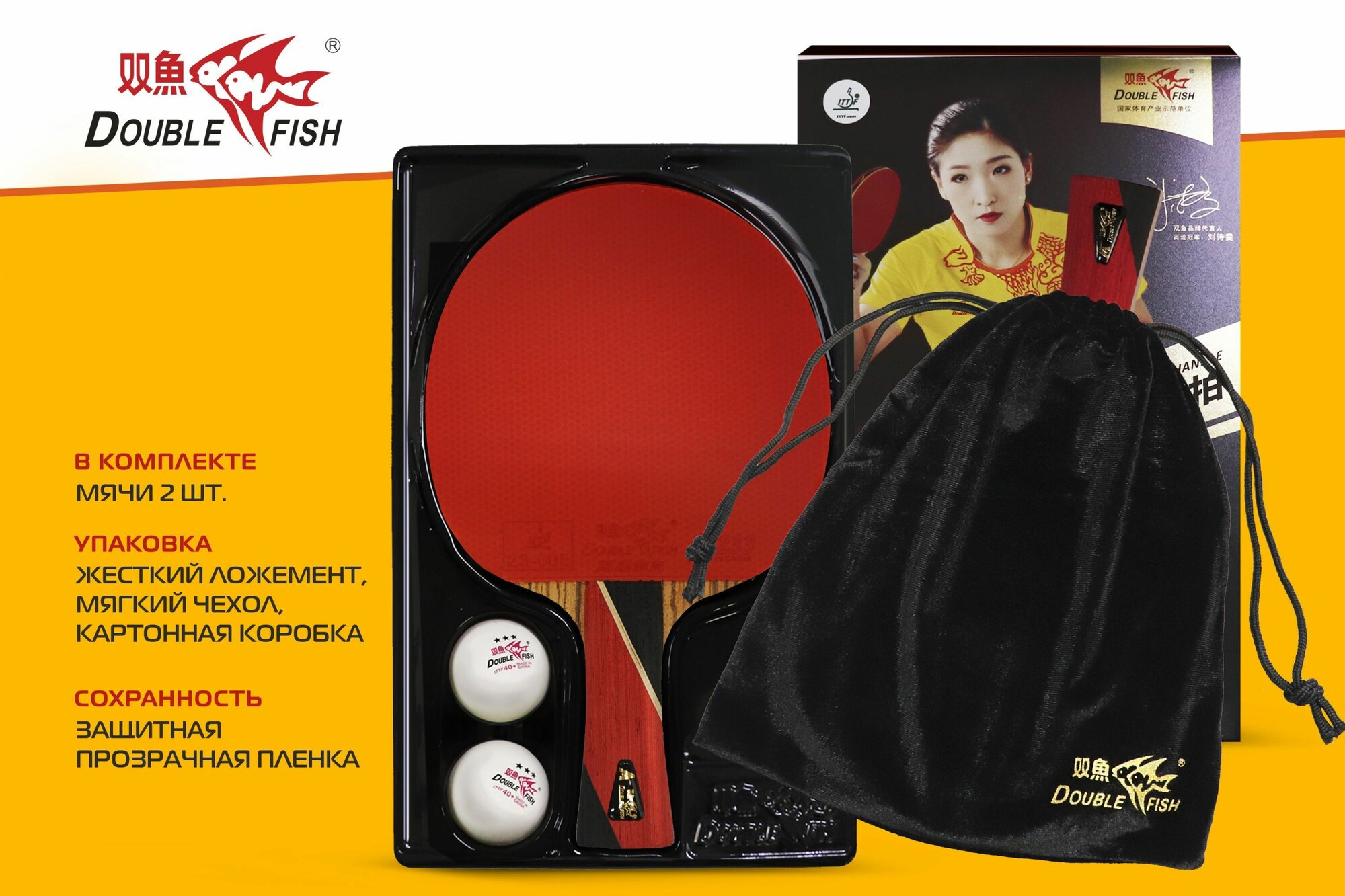 Набор для настольного тенниса Double Fish 5A-C: 1 ракетка, 2 мяча 3 925 ₽