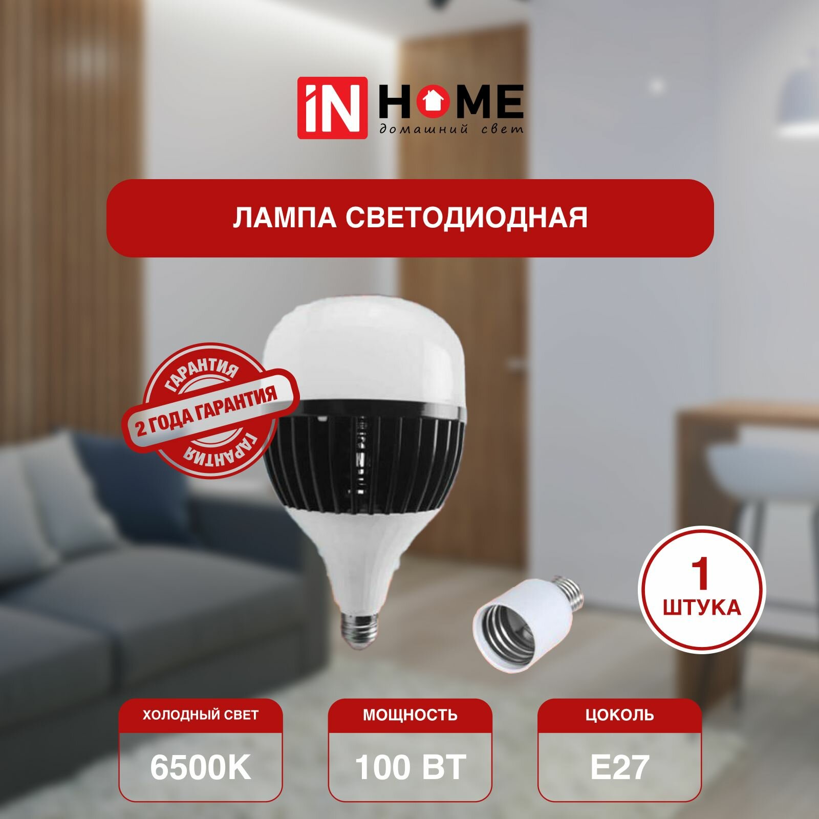 Лампочка светодиодная, белый холодный свет LED-HP-PRO 100Вт 230В E27 с адаптером Е40 6500К 9500Лм, IN HOME (арт. 4690612035697) - 1 штука информация: