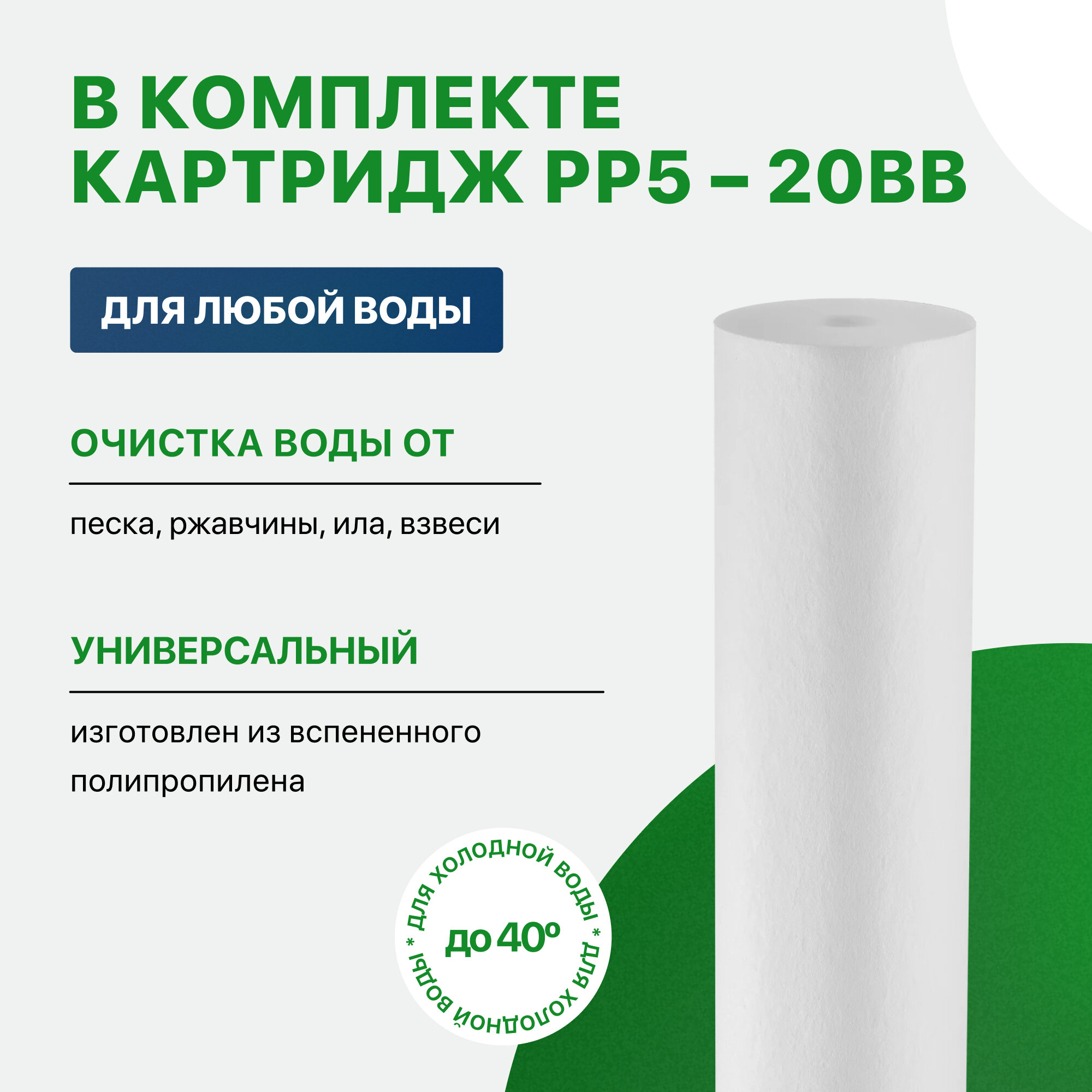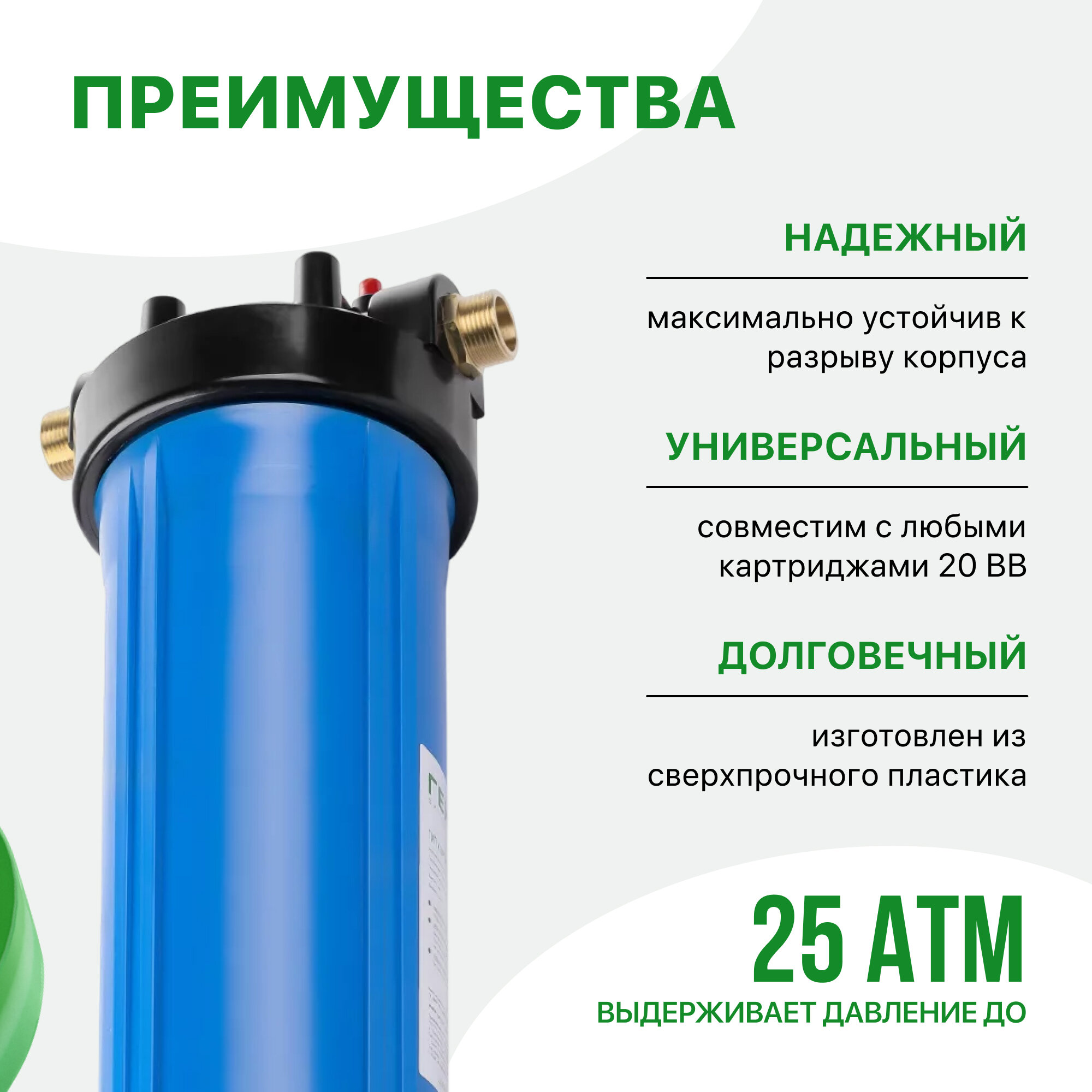 Фильтр магистральный Гейзер Джамбо 20ВВ 1", с картриджем, большой ресурс и высокая производительность, 32034 информация: