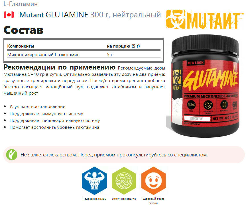 Мы выбрали 10 лучших цен на Глютамин Mutant Core Series L-Glutamine 300 гр. Перед тем как купить Глютамин Mutant Core Series L-Glutamine 300 гр посмотрите найденные предложения из Яндекс Маркета и других сайтов на основе XML фидов.