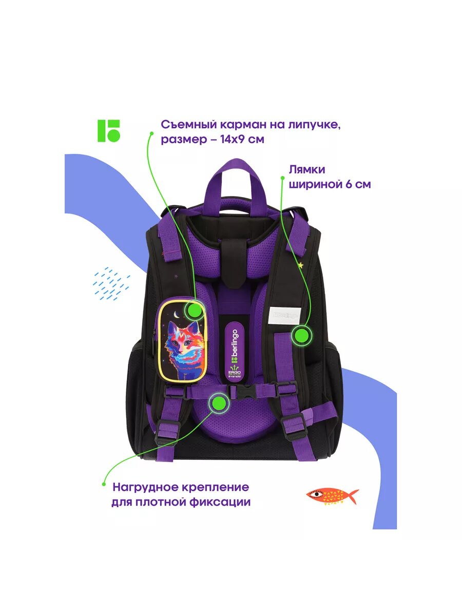 Отзывы на Ранец школьный Berlingo Expert "Astro Cat", 37х28х16 см, 2 отделения, 2 кармана, анатомическая спинка (RU09025)