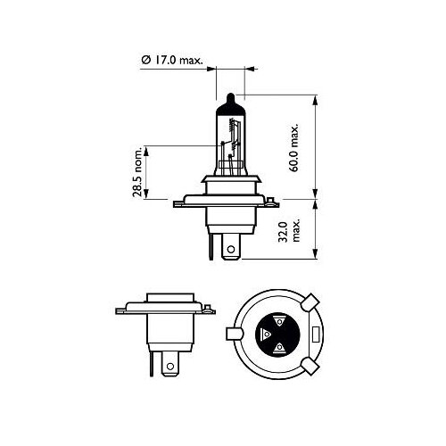 Лампа Philips Halogen 12V H4 12V- 60 / 55W (P43t) ( +30% света) Vision Moto PHILIPS 12342PRBW 1 286 ₽