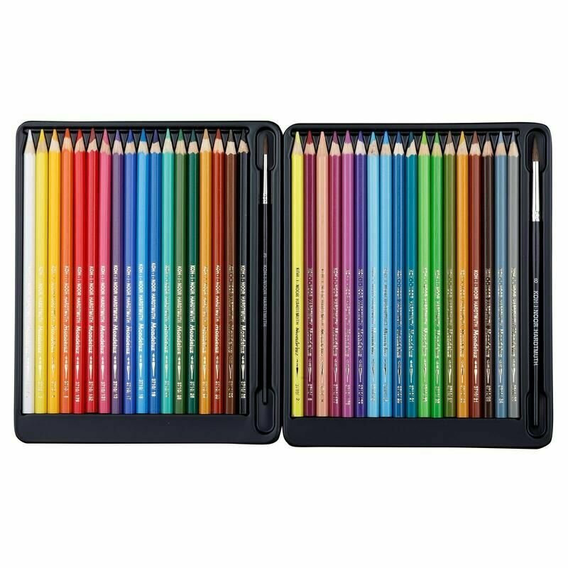 Акварельные карандаши KOH-I-NOOR Набор карандашей акв. худож. "Mondeluz" KOH-I-NOOR, 36цв., кисти, точилка (картон. коробка)