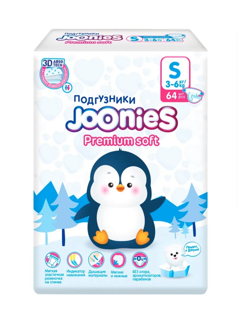 Подгузники детские Premium Soft S 3–6кг, 64шт информация:
