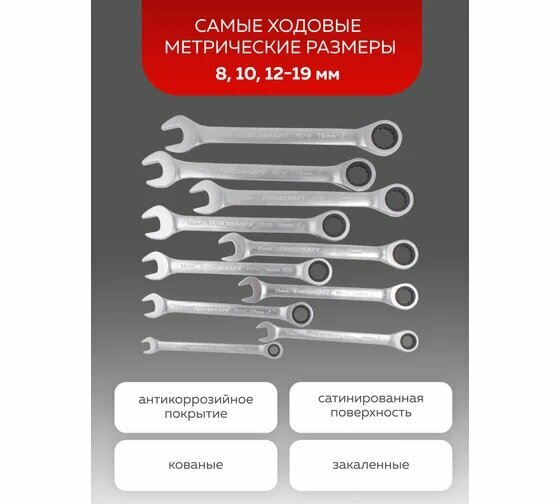 Набор ключей комбинированных трещоточных 10 предметов 8-19 мм FORCEKRAFT FK-51102