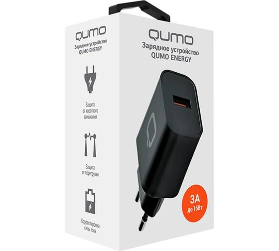 QUMO Сетевое зарядное устройство Charger 0048 , 1 USB, 3A, черный 33003 информация: