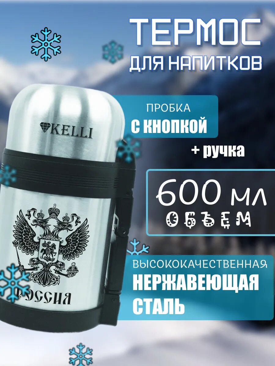 Отзывы на Термос Kelli 0,6 с ручкой и ремешком для переноски, KL0909, серебристый, нержавеющая сталь