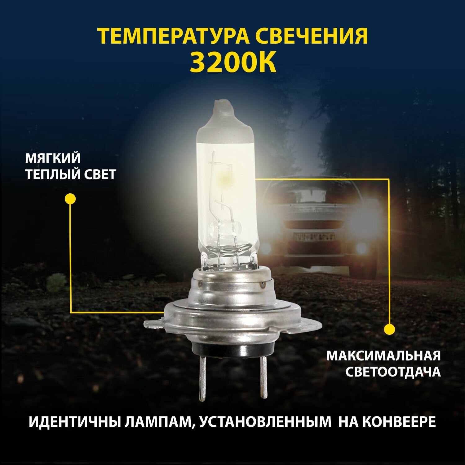 Лампа h7 галогеновая автомобильная Goodyear 12V 55W PX26d для Lada (Vesta/ Калина/ XRAY/ Priora/ Chevrolet-Niva) UAZ Patriot, VW Tiguan, Touareg, Passat B6 B7 информация:
