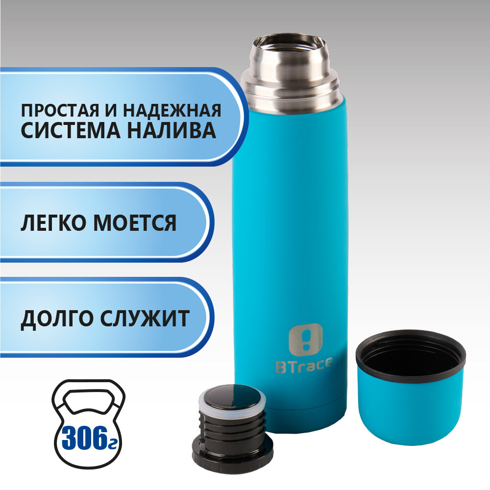Термос BTrace 0,8 л двойные стенки, голубой, нержавеющая сталь, soft-touch покрытие, крышка-чашка, непроливайка информация: