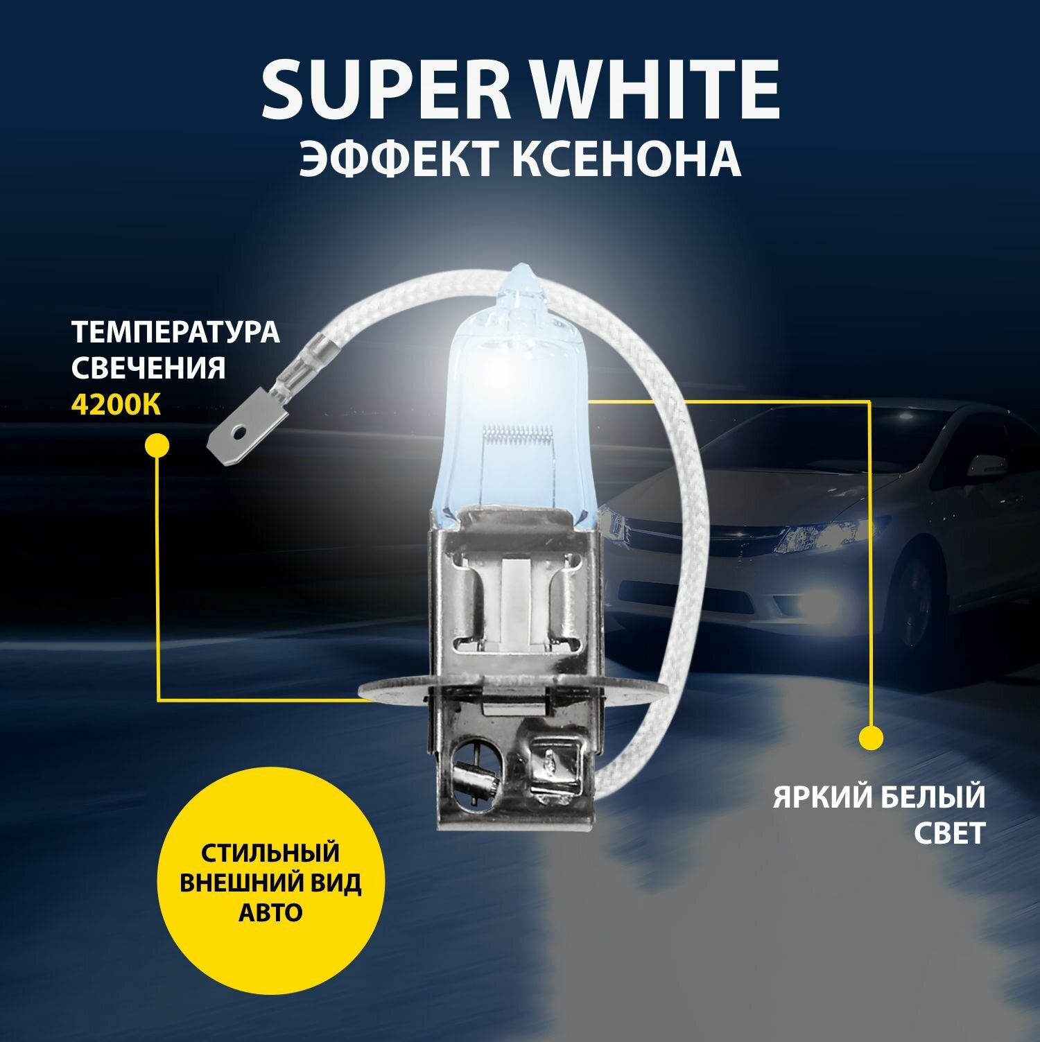 Лампа автомобильная галогенная Н3 Super White Goodyear 12V 55W PK22s для UAZ Patriot, VOLKSWAGEN Golf IV, HYUNDAI H-1 Starex, MITSUBISHI Delica Star Wagon, SKODA Fabia, OPEL Zafira B