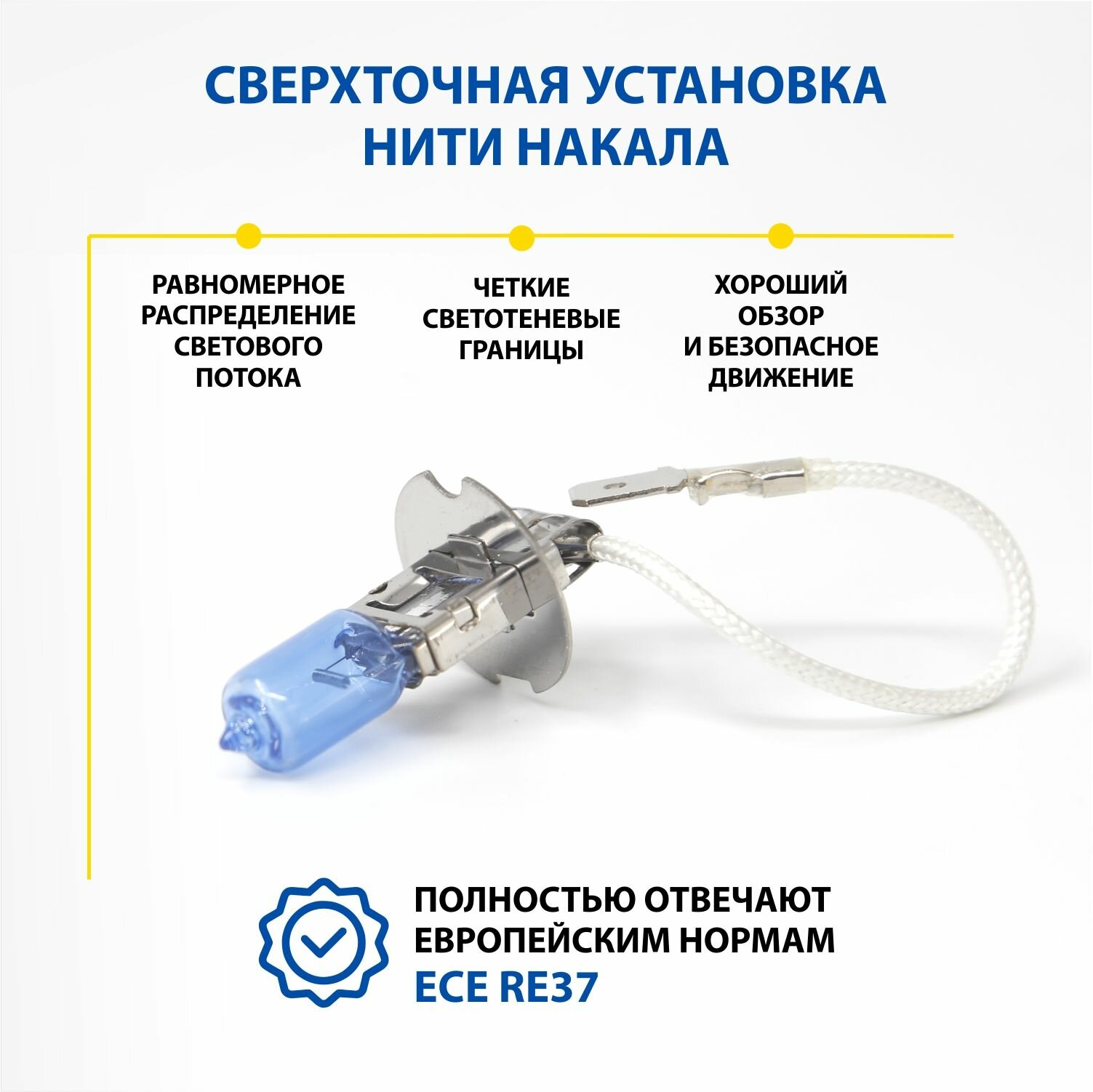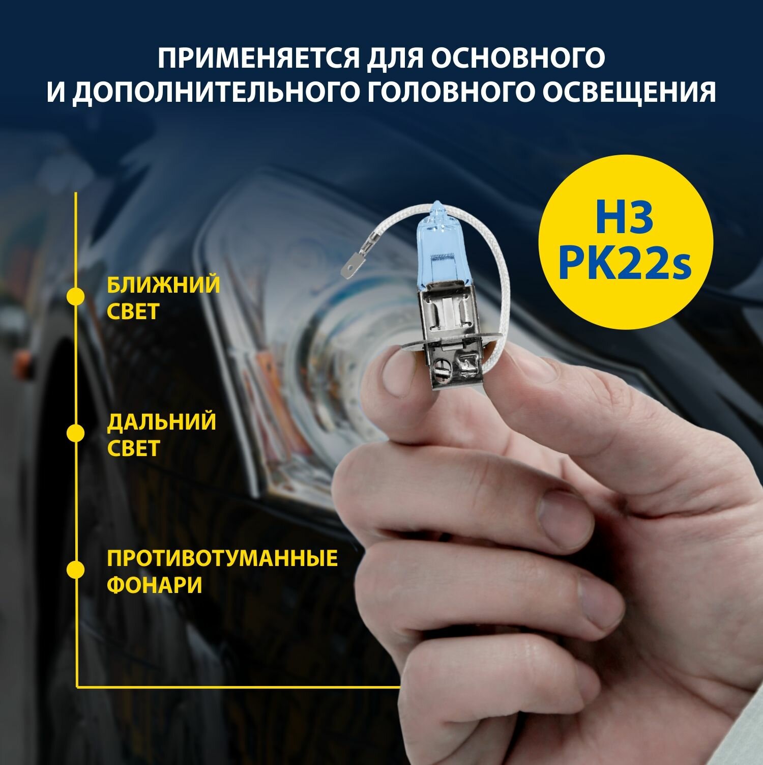 Лампа h3 галогеновая автомобильная Super White Goodyear 12V 55W PK22s для UAZ Patriot, VOLKSWAGEN Golf IV, HYUNDAI H-1 Starex, MITSUBISHI Delica Star Wagon, SKODA Fabia, OPEL Zafira B информация: