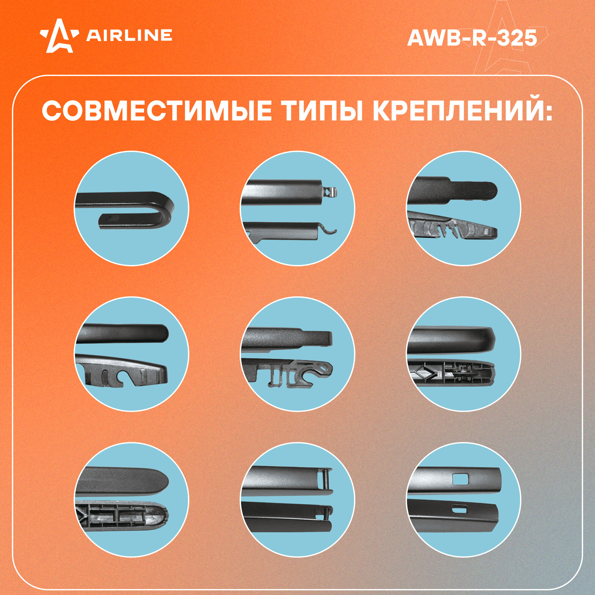 Щетка стеклоочистителя задняя бескаркас 325мм (13) 8 адаптеров (AWB-R-325) AIRLINE Арт. awb-r-325
