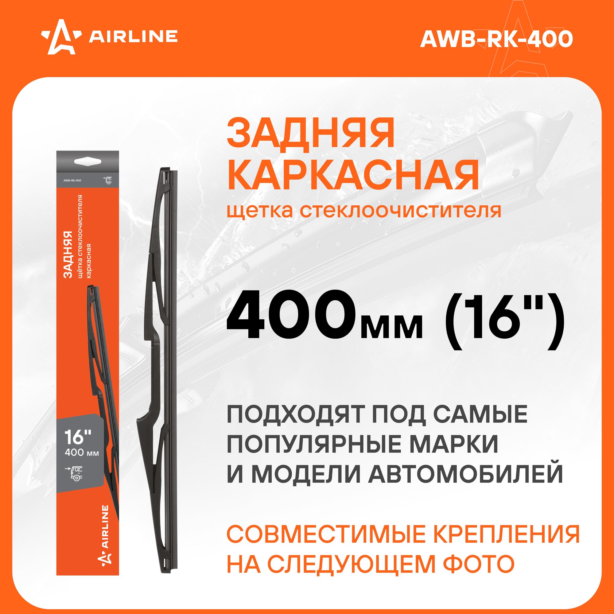 Щетка стеклоочистителя 400 мм (16'') задняя каркасная, 5 адаптеров (AWB-RK-400) AIRLINE информация: