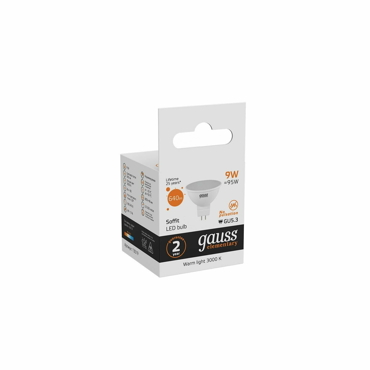 GAUSS 13619 Светодиодная лампа LED Elementary MR16 GU10 9W 640lm 3000К 1 10 100 0