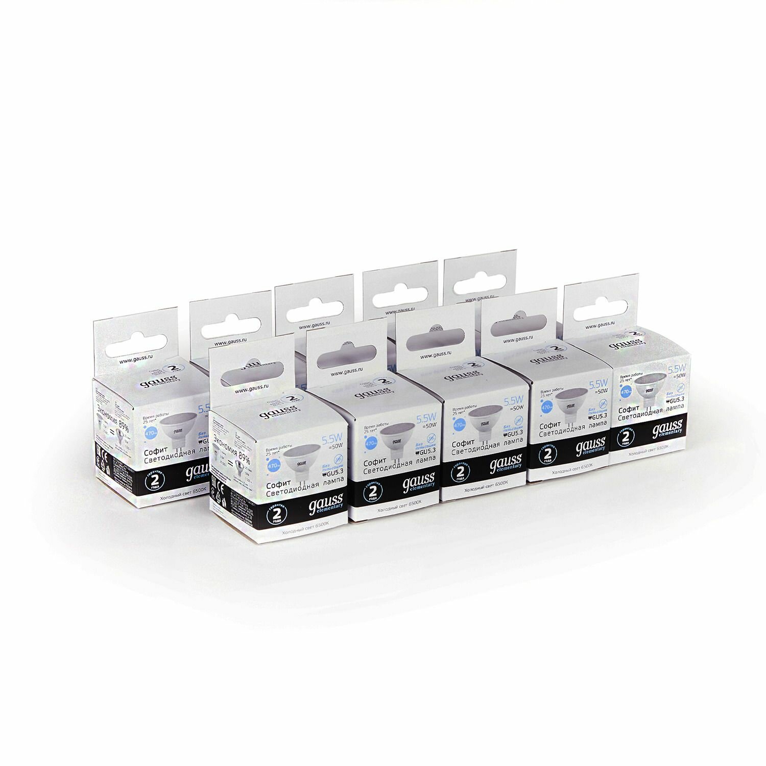 Упаковка ламп LED GAUSS GU5.3, спот, 5.5Вт, MR16, 10 шт. [13526]