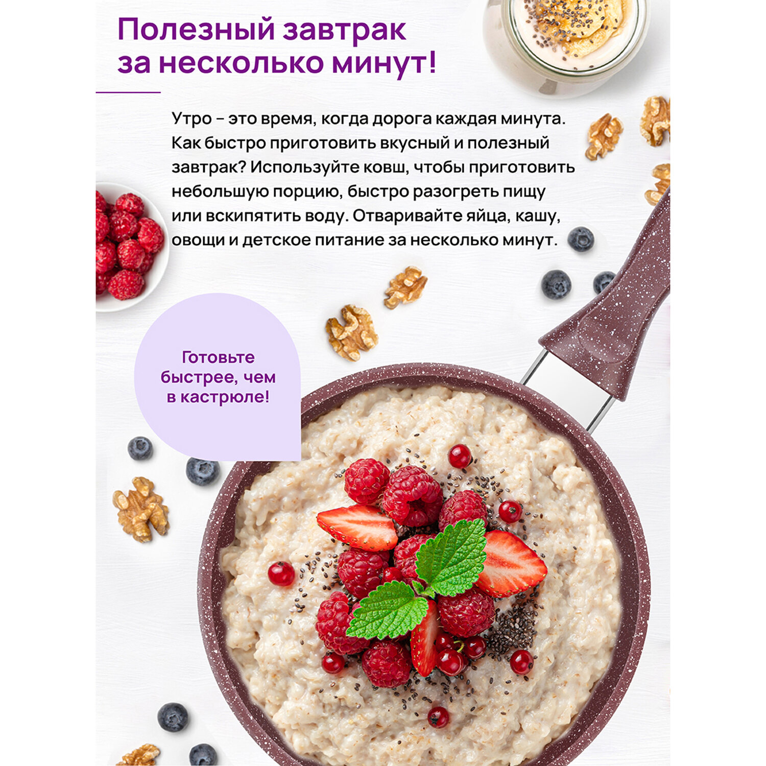 Ковш 1,2 л Elan Gallery гармония вкуса Рубин с крышкой D16, толстостенный из литого алюминия с двухслойным антипригарным покрытием с несъемной ручкой Идеальный подарок на Новый год Рождество День Рождения и 8 марта